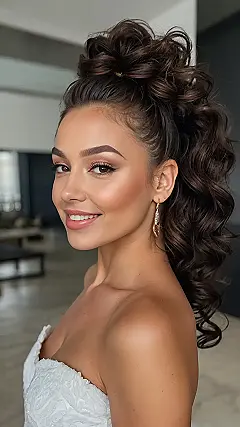 This woman’s hair is absolutely stunning, and it makes her look like she just rolled out of bed looking flawless! The curly ponytail is perfect for a special occasion, like a wedding or a prom. It’s the kind of hairstyle that makes you feel like a princess, and it looks like she’s ready to take on the world with confidence. Plus, who doesn’t love a good curly hairstyle? It’s easy to style, looks super chic, and makes you feel good about yourself.