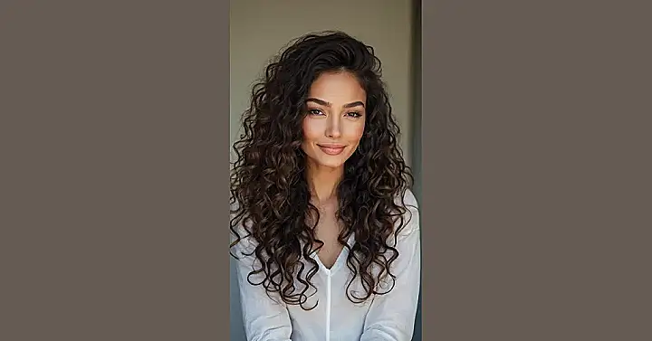 The image shows a gorgeous girl with long, curly hair that looks like it could bounce a basketball. It’s the kind of hair that makes you want to run your fingers through it and maybe even give it a little squeeze, but hey, we’re all about respecting personal space here. Her smile is contagious, like a happy song you can’t help but sing along to. This girl’s hair is a statement, saying “I’m confident, I’m fun, and I’m totally rocking this curly look!” Just like her hair, she seems like she’s full of personality and ready to take on the world.