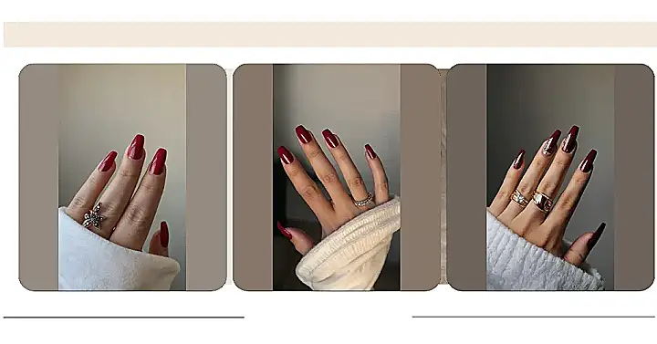But here’s the funny part: If you try to paint your nails this dark red, you might look like you’re trying to give everyone a spooky Halloween vibe, even if it’s not Halloween! So make sure you use a super-thin coat of polish, or you might end up looking like you dipped your fingers in a bowl of red wine. Just a little joke, but don’t be afraid to experiment with nail art!