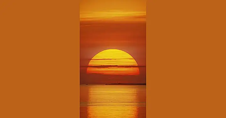 Imagine you’re standing on a beach, listening to the waves crashing softly against the shore. The sun is going down, but it’s not just disappearing, it’s putting on a whole show! The sky is a mix of orange, red, and purple, like someone spilled a giant rainbow across the sky. It’s like the sun is saying “See ya later, earth!” and then slowly sinking into the sea. It’s a beautiful and kind of mysterious way to end the day.