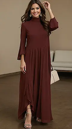 With its long sleeves and floor-length skirt, this dress is totally autumn-ready. It’s like a comfy blanket, but way more stylish! Whether you’re heading to a football game or just want to look cute while running errands, this dress is a great choice for all your fall adventures. Just imagine yourself twirling around in it, feeling like a princess!