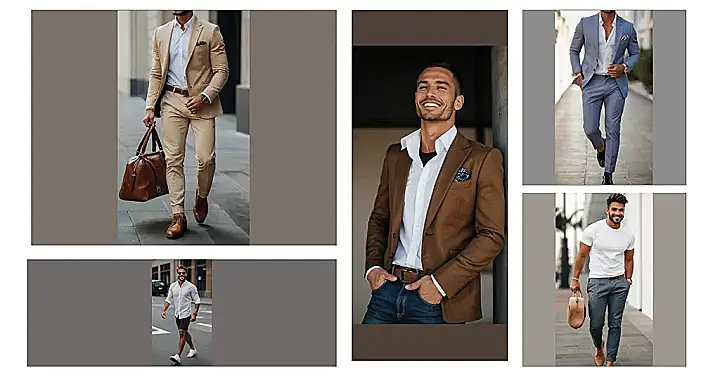 These two guys look like they walked straight out of a fashion magazine, right? But don’t worry, you don’t need to be a model to rock these looks. They’re actually super simple and can be copied by anyone! Just look at the guy on the left. He’s got the classic white shirt and khaki pants combo, but he’s made it extra stylish with a cool watch and some awesome shoes. Who knew you could make beige look so good?