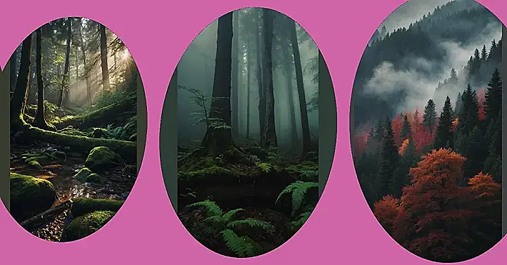 This picture looks like something straight out of a fairytale! The forest is so thick and mysterious, it feels like a secret world. The trees are all tangled together, with mossy branches that look like they could reach out and grab you. It’s kind of spooky, but in a cool way, like you’re about to discover some hidden treasure or meet a talking animal. I bet the air in this forest smells amazing, all woodsy and fresh, and maybe even a little bit magical.
