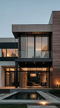 This house is like a clean slate. It’s all about simple lines and sleek design, which is kind of like the opposite of a messy teenager’s bedroom. It’s so modern that you’d probably think it was built by robots! The huge windows let in tons of light and make the whole place feel airy and spacious. You can almost picture yourself waking up in this house, sipping your coffee and admiring the view – which, judging by the swimming pool, could be a pretty amazing sight!