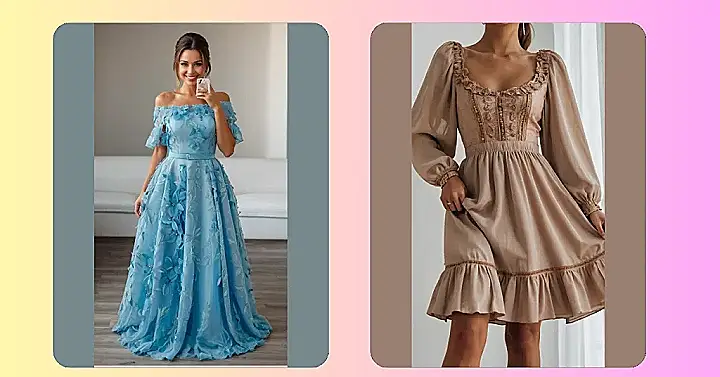 Now, let’s talk about those other dresses, because who doesn’t love a good fashion comparison? The blue dress is super chic and sleek, like you’re ready to be a superhero! The pink dress is all about fun and personality, like you’re about to burst into a chorus of happy tunes. But no matter what your style is, there’s a dress in this picture for you! So get ready to rock those celebrations – you’re gonna look amazing!