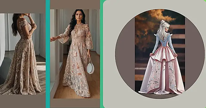 This dress is like a walking flower garden! It’s covered in beautiful, delicate flowers that look like they were just plucked from a blooming field. It’s super flowy and long, so you can feel like a princess (or a fairy) twirling through a magical meadow. The dress is super elegant, but it’s also super comfy, like wearing a giant, pretty pillow. You’ll be the belle of the ball, or the most fabulous flower in the garden!