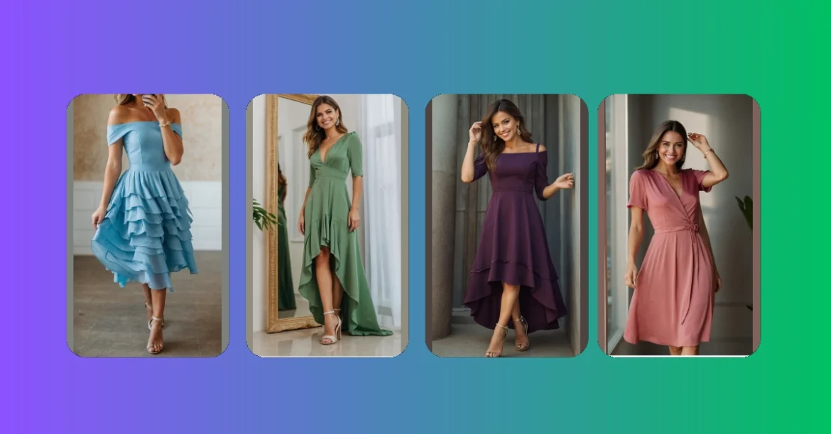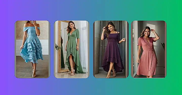 Now, let’s talk about those other dresses, because who doesn’t love a good fashion comparison? The blue dress is super chic and sleek, like you’re ready to be a superhero! The pink dress is all about fun and personality, like you’re about to burst into a chorus of happy tunes. But no matter what your style is, there’s a dress in this picture for you! So get ready to rock those celebrations – you’re gonna look amazing!