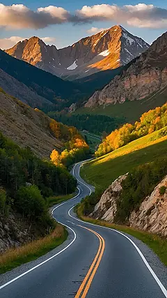 This picture makes me want to hop in a car and just drive. The road looks so smooth and winding, like it’s just begging you to take a ride. Imagine the feeling of the wind in your hair and the sun on your face as you cruise through these beautiful mountains. You’d probably see some awesome wildlife too! Maybe a cute squirrel or a majestic deer. Just try not to get lost in all the amazing views.
