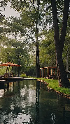 This picture screams “relaxation” – just imagine sinking into those comfy cushions, surrounded by lush greenery. It’s like a private escape in the middle of nowhere, perfect for forgetting about homework and just enjoying the peace and quiet.