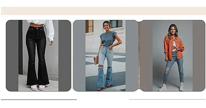 Those wide-leg denim pants? They’re called “flares,” and they’re totally back in style! Remember your mom’s old jeans? Yeah, those! But now they’re more modern and come in all kinds of fun colors and washes. And get this, they’re actually super comfy! Think of it like wearing your pajamas, but way more stylish. You can wear ’em with a t-shirt, a cute top, or even a blazer for a more polished look.