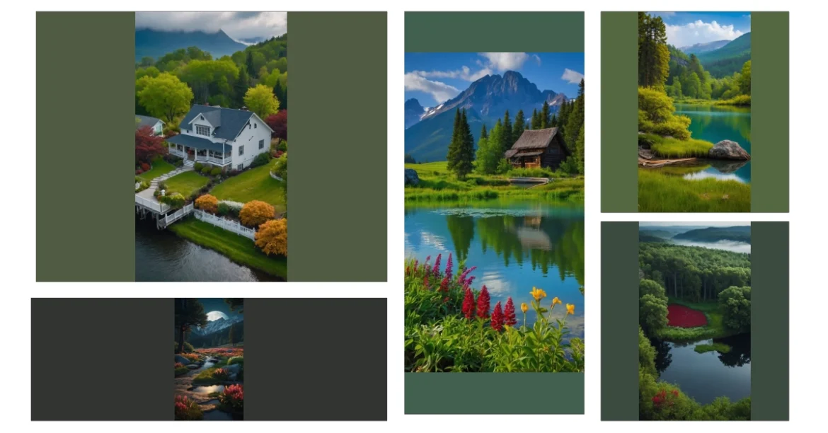 This picture is like something straight out of a fairytale! You’ve got a cute little white house with a bright green roof, surrounded by lush green grass and trees. And look! A little pond tucked in the corner, almost hidden by the flowers. It’s like someone built a house in a secret garden, and it’s just waiting for you to come and explore!