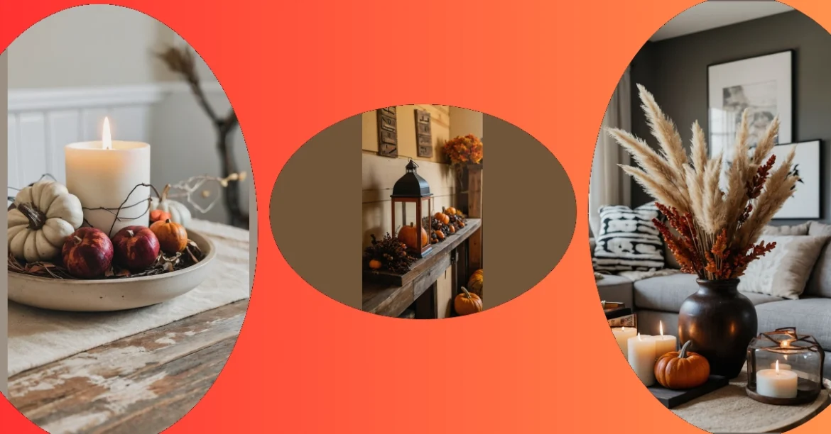 Pumpkins, pine cones, and a warm candle – what more could you ask for in fall decor? These classic elements can be dressed up or down depending on your style. They’re like the comfy, neutral sweater you can wear to a fancy dinner or a casual movie night. This image shows a simple, elegant way to embrace the season, with a focus on natural colors and textures that are both stylish and welcoming.