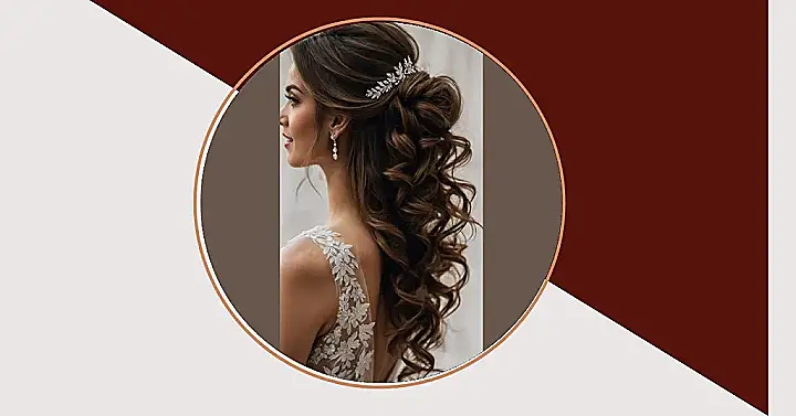 You know that feeling when your hair just *gets* you? This gorgeous brunette ‘do is basically hair goals, especially if you’re rocking brown locks and planning a wedding that’s more epic than your last TikTok dance. Those flowing curls and that elegant half-up style with the sparkly hairpiece? It’s like her hair is saying, “I’m ready for my close-up, and I’m bringing the bling!” This is the kind of hair that makes you wish you had a tiny, personal wind machine following you around all day.