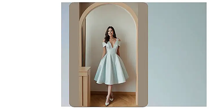 Check out this totally cool dress! It’s got that awesome light blue color that looks like a perfect sky and a skirt that just screams “twirl time.” Those off-the-shoulder sleeves are pretty sweet, right? This dress is definitely ready for a party or just making a regular day feel extra special. It shows how a great design can make you feel amazing just by wearing it!