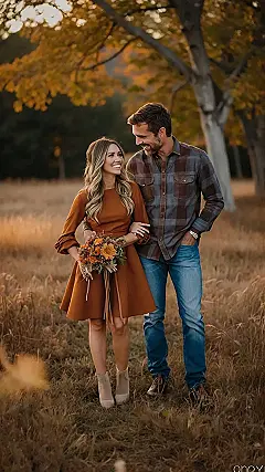 This photo is giving major “fall family picture” vibes, and it’s so cute! The couple is totally rocking their outfits, especially the girl’s white dress and brown boots. It’s like they’re ready for a road trip, which is super fitting for fall! They look so happy and relaxed, just enjoying the beautiful fall weather. I bet their family pictures are going to be amazing!