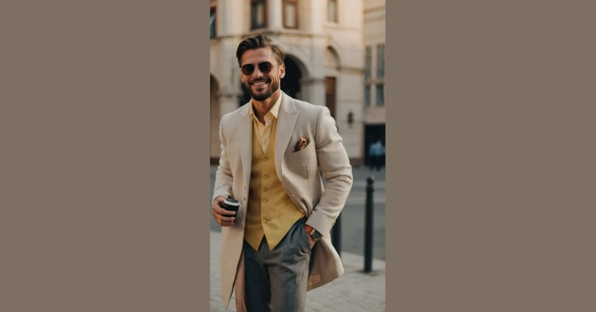 This guy is looking sharp! From his slick shades to his fancy watch, he’s got the whole “men’s fashion” thing down. And did you notice his vest? That’s not just any vest, it’s a statement piece! Imagine rocking that to school or hanging out with your friends. You’d be the coolest dude on the block for sure.