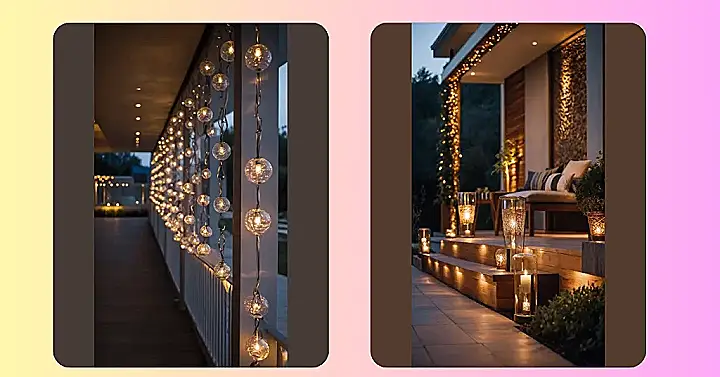 And let’s be real, in December, when it gets dark super early and it’s freezing, these outdoor lights aren’t just for looking pretty. They’re basically your home’s way of saying, “Hey, watch your step, there’s a staircase here!” Those little lights built right into the steps are genius, preventing awkward tumbles and making sure everyone (especially clumsy gift-bearers) can navigate safely. Plus, all those warm glows from the lanterns and hanging jar lights just make everything feel cozy, even when the outside air is biting your nose. It’s like a warm hug for your eyeballs before you even make it to the hot cocoa inside.