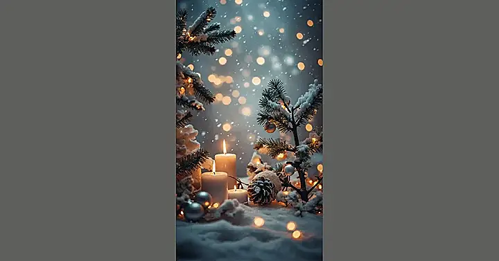And seriously, how good are those glowing candles? They’re basically screaming ‘cozy night in’ without you having to worry about setting off the smoke detector. Plus, those adorable snowy pinecones and shiny silver ornaments are all about the holiday spirit, but without the hassle of untangling a bazillion fairy lights or finding where your pet hid the missing bauble. Ditch that basic wallpaper and let this little winter scene be the MVP of your phone or computer screen, reminding you that even on a Monday, a touch of holiday magic is just a glance away.