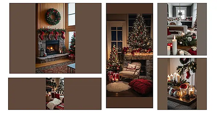 The image is like a warm hug on a cold winter day. It’s got all the elements of a cozy Christmas room: a twinkling tree with shiny ornaments, soft, fluffy pillows beckoning you to sink in, and the glow of candles casting a magical light. It’s like the perfect scene for a Christmas movie where the family gathers for carols and hot chocolate – you can almost hear the laughter!