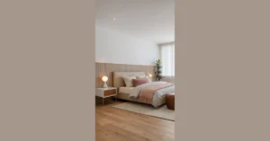This room is basically a giant, fluffy, ‘do not disturb’ sign in physical form. Look at that bed! It’s practically begging you to dive in headfirst and ignore all your responsibilities – like, forever. With those soft, earthy colors and enough pillows to build a fort (or just melt into), this isn’t just a bed; it’s a peaceful vortex designed to swallow up your stress, your homework, and maybe even your alarm clock. It’s the kind of place where you’d probably forget what day it is, which honestly, sounds pretty amazing sometimes.