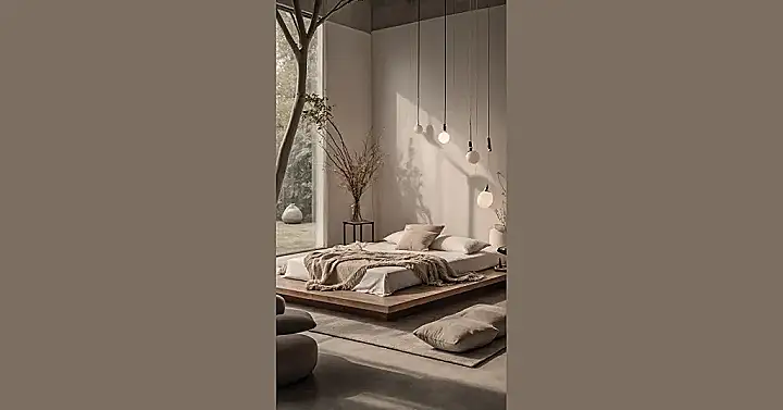 Not to mention the soft, glowy lights and that awesome stone wall, which makes the whole place feel super cozy and cool at the same time. It’s like a secret hideout for your zen mode. You see those bowls of oranges and smooth rocks? They’re so perfectly placed, you’d probably hesitate to grab a snack, worried you’d ruin the artistic vibe. This isn’t just a peaceful room; it’s a room that has achieved true inner peace, probably meditating harder than most of us on a Monday morning.