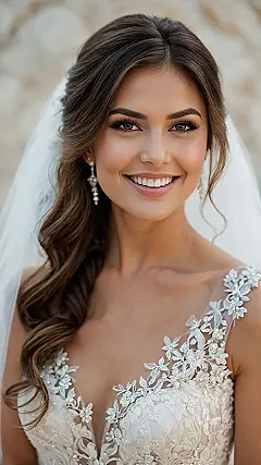 If you’re aiming for a more relaxed look, a half-up hairstyle is a brilliant choice. Perfect for showing off some beautiful waves while keeping the hair out of your face, you can create a half-up medium style adorned with pretty braids or curls that add texture and charm. This style adds just enough flair without overshadowing your natural beauty—after all, you want to shine bright on your special day!
