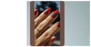 And check out those rings! Those deep red stones totally match the festive nail theme. It’s like the whole hand is ready for a holiday party. You could totally rock these with your favorite holiday sweater and jingle all the way to Christmas dinner. Who needs mistletoe when you’ve got this much holiday sparkle?