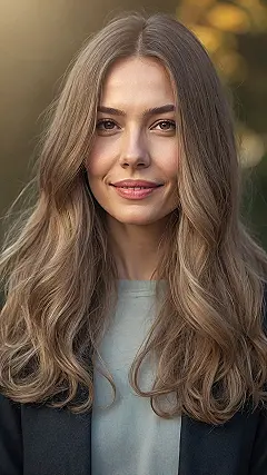 What’s really cool about long hair with layers is how it magically makes styling easier. Forget wrestling with a brush trying to get some volume; these layers do that naturally, framing your face with a cool, carefree look. It’s almost like having a built-in wind machine constantly blowing a gentle breeze through your strands for that perfect movie-star effect, even when you’re just chilling in your living room. So, if you’re aiming for hair that looks effortlessly chic and makes you smile, just like the person in this photo, layers are definitely your new best friend!