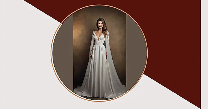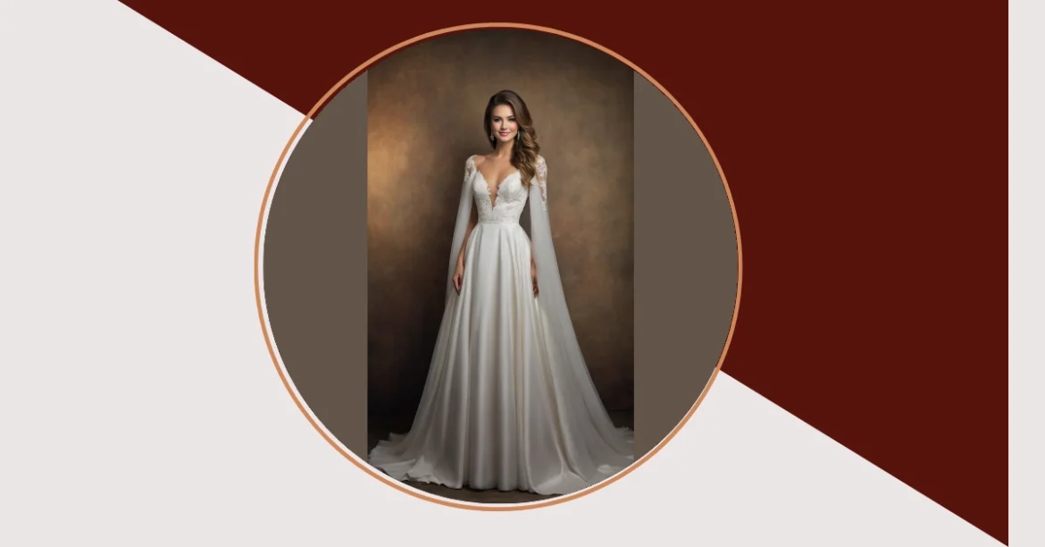 The woman in the picture looks absolutely ready to conquer the wedding aisle, doesn’t she? Her dress is seriously giving off “goddess vibes” with that elegant lace bodice and those flowy, cape-like sleeves that make you think she might just float down the aisle. You can just tell this gown isn’t just pretty; it’s got that secret power structure underneath, probably a fantastic corset working hard to give her that perfectly snatched silhouette. It’s like having a built-in superhero suit that makes sure everything stays perfectly in place while she’s busy shining brighter than the disco ball at prom.