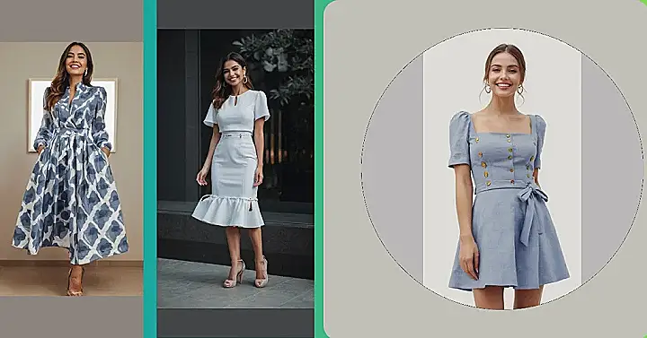 Of course, we can’t overlook the impact of white florals on blue frocks! A frock featuring a crisp white background with navy blue prints is classy and fits wonderfully in any wardrobe. Whether it’s a day in the office or a romantic dinner, this combination speaks volumes while keeping your style understated yet fabulous. And let’s be honest—when you’ve got a dress this chic, confidence is your only accessory.
