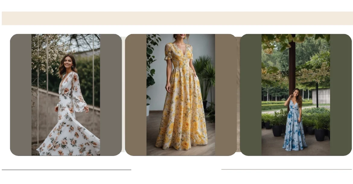 This long floral outfit is basically sunshine you can wear, packed with so many vibrant yellow flowers you might just accidentally attract a butterfly or two (don’t worry, they’ll probably just admire your style). It’s the kind of dress that makes you want to skip through a field or, at the very least, make a grand entrance wherever you go, all while rocking a huge, confident smile just like the one in the picture. Plus, with sleeves that flutter, you’re practically a fashion superhero ready to swoop into any event looking effortlessly cool.