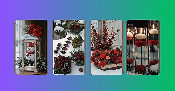 Seriously though, these winter floral arrangements are goals! They’re like the epitome of festive chic, all tucked snugly into their little lantern homes with a candle that’s just begging to be Instagrammed. It’s the perfect winter centerpiece, way more exciting than a bowl of potpourri! You could practically smell the crisp winter air and feel the gentle snow falling just by looking at them. Plus, who doesn’t love a good candlelit flower display, especially when it’s surrounded by fake snow? It’s totally Instagram-worthy, right?