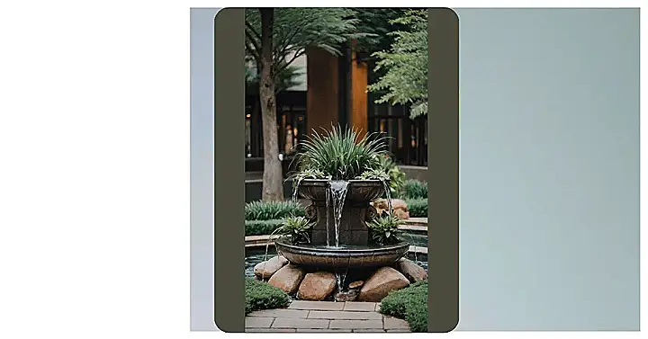 This cool water fountain looks like a bunch of giant, friendly rocks decided to stack themselves up and build their own personal water park. The water just happily tumbles down each level, creating a mini waterfall show right there. It’s the perfect spot for some plants to hang out, looking all leafy and green, like they’re waiting for their turn to go down the slides. Hearing the water splash makes you feel instantly calmer, like someone hit the ‘relax’ button on the day.