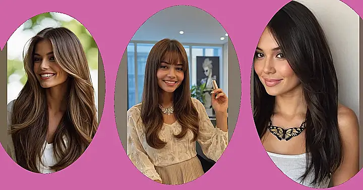 Now let’s talk about long layers styled with straight hair—perfect for a dramatic effect! These styles can range from sleek and polished to soft and playful. Just imagine long layers cascading down your back, dancing in the air as youthful curtain bangs frame your face. It’s like a butterfly’s gentle flutter—absolutely mesmerizing!