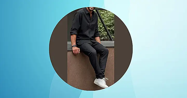 Rocking an all-black outfit might seem like you’re trying to blend in with the shadows, but this dude proves it’s actually a total standout move! Check out his slick black pants paired with that comfy-looking black button-up shirt. It’s like he hit the fashion jackpot without even trying, effortlessly looking cool. Plus, those crisp white sneakers? They’re basically screaming, “I know what I’m doing,” while secretly being the most comfortable shoes on the planet. Who knew looking this sharp could be so incredibly easy?