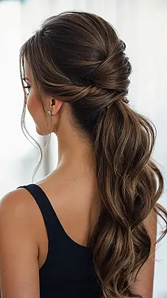 Having hair this cute is practically a requirement for bridesmaid duties. You need a style that looks fantastic in all those wedding photos (because let’s be real, there will be a million), but also stays put while you’re helping the bride with her dress or tearing up the dance floor. This kind of fabulous ponytail lets you look polished without feeling like your hair is glued to your head. Plus, with waves like that, you’re guaranteed to catch some attention, maybe even from the cute groomsman who totally forgot his tie.