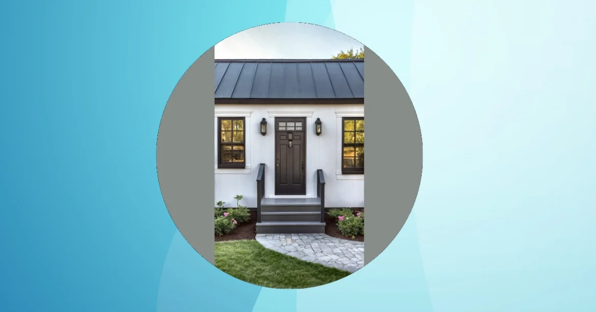Check out this awesome little pad! With its super cool dark metal roof and crisp white siding, this small house proves you don’t need a mansion to have serious style. It’s got that welcoming vibe with the chic black door and matching windows, all trimmed out perfectly. Think about it: a small house means way less time spent cleaning a gazillion rooms, and more time actually enjoying your space – maybe turning that cozy living room into an epic gaming zone or the ultimate movie night fort!