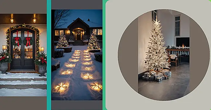 The way those outdoor lights glow against the snowy ground makes everything feel super cozy, even if your toes are probably freezing just looking at it. Those big planters aren’t messing around either; they’re packed with enough festive greens and shiny ornaments to make even a grumpy Grinch crack a smile. Peeking through the glass, you can even spot some warm, flickering candles inside, which totally makes you wonder what kind of delicious smells are wafting around in there. This whole setup is like a giant, sparkly invitation to ditch the cold and dive headfirst into some serious holiday fun, proving that Christmas decorations can look awesome no matter how chilly it gets!