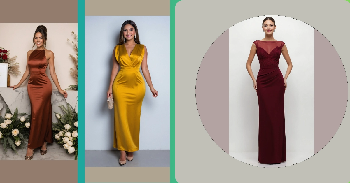 Talk about autumn goals! This dress, with its rich, warm color, is basically fall fashion personified. It’s got that perfect burnt orange hue that makes you look like you just stepped out of a fancy magazine, completely ready for any fall wedding. You’ll be turning heads with this sleek, satiny number, making it clear you came to celebrate in style, not just grab a slice of cake (though that’s important too!). It’s the kind of dress that says, “I’m elegant, I’m sophisticated, and yes, I absolutely nailed the dress code.”