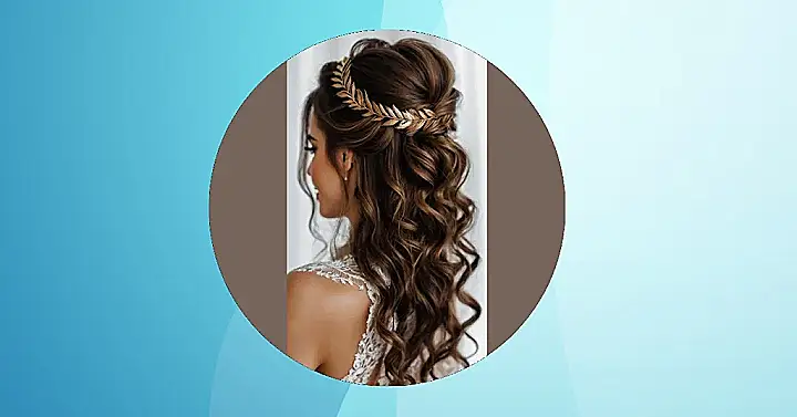 Stepping into the spotlight on your big day means your hair needs to be ready for its close-up, and this style is totally acing the assignment! The way those beautiful waves flow down, while the top half is elegantly pulled back, gives off major “I woke up like this, but better” vibes. Plus, that super sparkly, leaf-inspired hairpiece isn’t just a pretty accessory; it’s basically giving your hair a fancy tiara, making sure you shine from every angle – no filter needed! It’s the kind of classic bridal look that’s both stunning and probably won’t get tangled in your wedding cake.