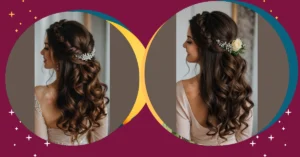 Getting ready for a big day can be tricky, especially when your hair decides it wants to do its own thing (we’ve all been there!). But check out this bride! Her hair decided to be a total superstar, giving us major classic bridal vibes with those long, flowing waves. It’s like her curls perfectly understood the assignment: look stunning, but also look like you just woke up like this, fabulous. Plus, that sparkly leaf accessory nestled in her half-updo is practically whispering, “I woke up flawless!”