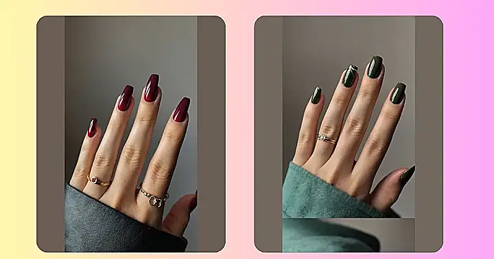 Those nails are giving us major autumn vibes! The rich maroon color is like a cozy sweater for your fingertips, perfect for all those pumpkin spice lattes and chilly nights. It’s a classic look that never goes out of style, and it’s totally easy to wear with everything from jeans to your favorite fall dress. The sparkle on the ring is a nice touch too, like a little bit of glittery fun in the fall air!