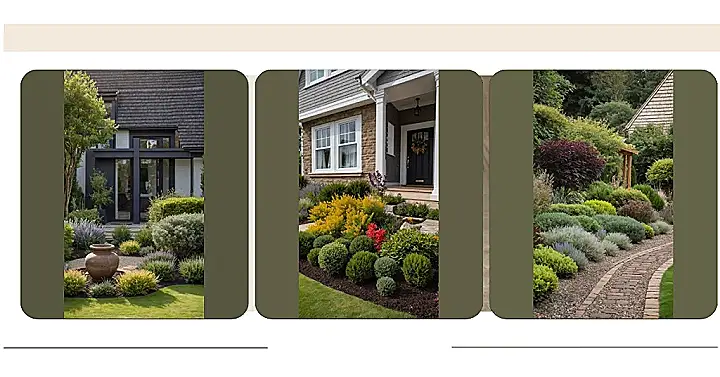 Making a first impression doesn’t just apply to you; your house needs to look sharp too! This front garden landscape is basically the coolest outfit your home could ever wear. Instead of just a boring lawn, you’ve got a whole crew of plants dressed in different shades of green, with some bold yellow and deep red shrubs adding serious pops of color. It’s like nature’s own fashion show, but instead of runway models, you have perfectly manicured bushes creating a welcoming vibe that probably makes all the other houses on the block feel a bit underdressed.