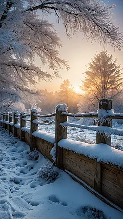 Down below, the ground and even the little fence look like they got a fresh dusting of glitter, catching those first golden rays of sun. It’s like nature decided to throw an impromptu winter party, and everyone (except maybe the actual sun, who’s still a bit sleepy) is covered in a sparkly white coat. You can practically hear the quiet crunch of untouched snow, maybe even smell the crisp, clean air – though from your screen, it just looks really, really cool. If you ever needed a reminder that winter can be absolutely breathtaking, this picture delivers, turning your device into a portal to this stunning, frosty wonderland.