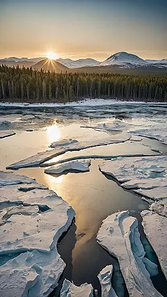 Wow, check out this place! This beautiful arctic landscape is definitely putting on a show. That sun peeking over the mountains is basically hitting the snooze button late, but when it finally gets up, it totally bathes everything in a golden glow, like it’s trying to make up for being a sleepyhead. Those trees look like they’re standing at attention, probably freezing their branches off but pretending it’s no big deal. It’s seriously stunning, kind of like if a winter wonderland decided to get a tan.