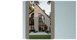 Look at this place! It’s like a classic castle decided to get a super trendy makeover and is now ready for its close-up. You know how Tudor homes usually have that cool, old-school vibe that makes you think of fancy historical stuff? Well, this one clearly got the memo, but then decided to add a gigantic, jaw-dropping arched window that basically screams, “Come on in, the Wi-Fi’s great and the views are even better!” It’s got all the sturdy stone walls and cool gables of a traditional Tudor, but with a modern twist that lets in all the awesome light and gives it a fresh, inviting feel.