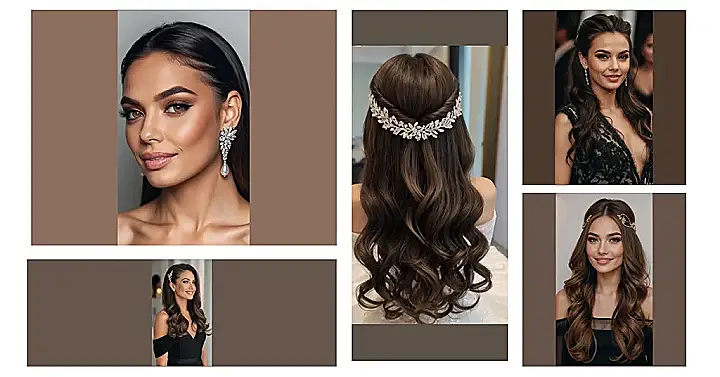 Let’s talk about that hair piece, though! It’s like a little crown for your hair, reminding you that you’re the queen of the evening. It adds just the right amount of bling, and it perfectly matches those dazzling earrings. With this hairstyle, you’ll be feeling like a princess all night long, ready to dance the night away and make some magical memories.