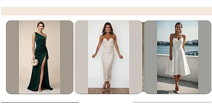Stepping out in this gorgeous off-white number, you’re basically telling the world, “I’m almost a bride, but first, let’s party!” This dress is the perfect mix of fancy and fun for a bridal shower. It says you’re ready to celebrate, collect amazing gifts, and maybe even dominate a round of bridal bingo, all while looking absolutely stunning. Just try not to get any cake frosting on that silky-smooth fabric – that’s a challenge worthy of a gold medal!