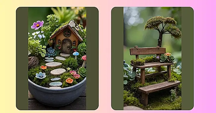 This fairy garden inspiration is giving me serious DIY vibes! I bet you could recreate something like this in an afternoon. Just grab some cool rocks for a pathway, a quirky succulent that looks like an alien flower, and a little house (maybe made from cardboard?). Next thing you know, you’ll have a mini-world where tiny, winged creatures can chill, avoiding homework and probably hosting way better parties than you.