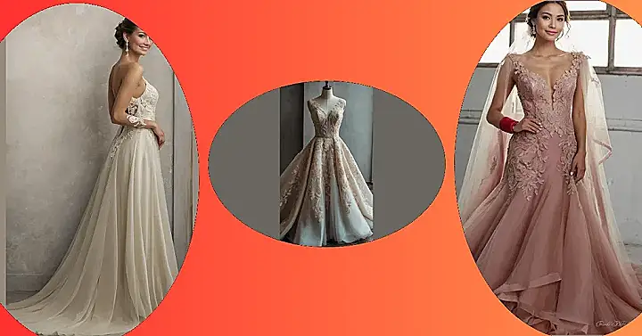 And guess what? You don’t have to be a royal to rock this look! This dress is all about embracing your unique style. It’s romantic, elegant, and a little bit unexpected – perfect for a bride who wants her wedding to be as special and unforgettable as she is. Plus, that beautiful soft peach color complements just about everything, meaning your wedding photos will be seriously stunning. So ditch the old rules and dare to be different – because this dress is absolutely dreamy!